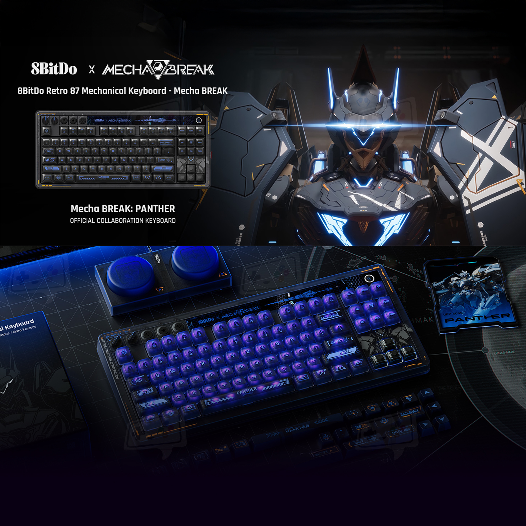 8BitDo Retro 87 Mechanical Keyboard - Mecha BREAK là mẫu bàn phím cơ không dây phong cách retro của 8BitDo, được thiết kế lấy cảm hứng từ series game Mecha BREAK.