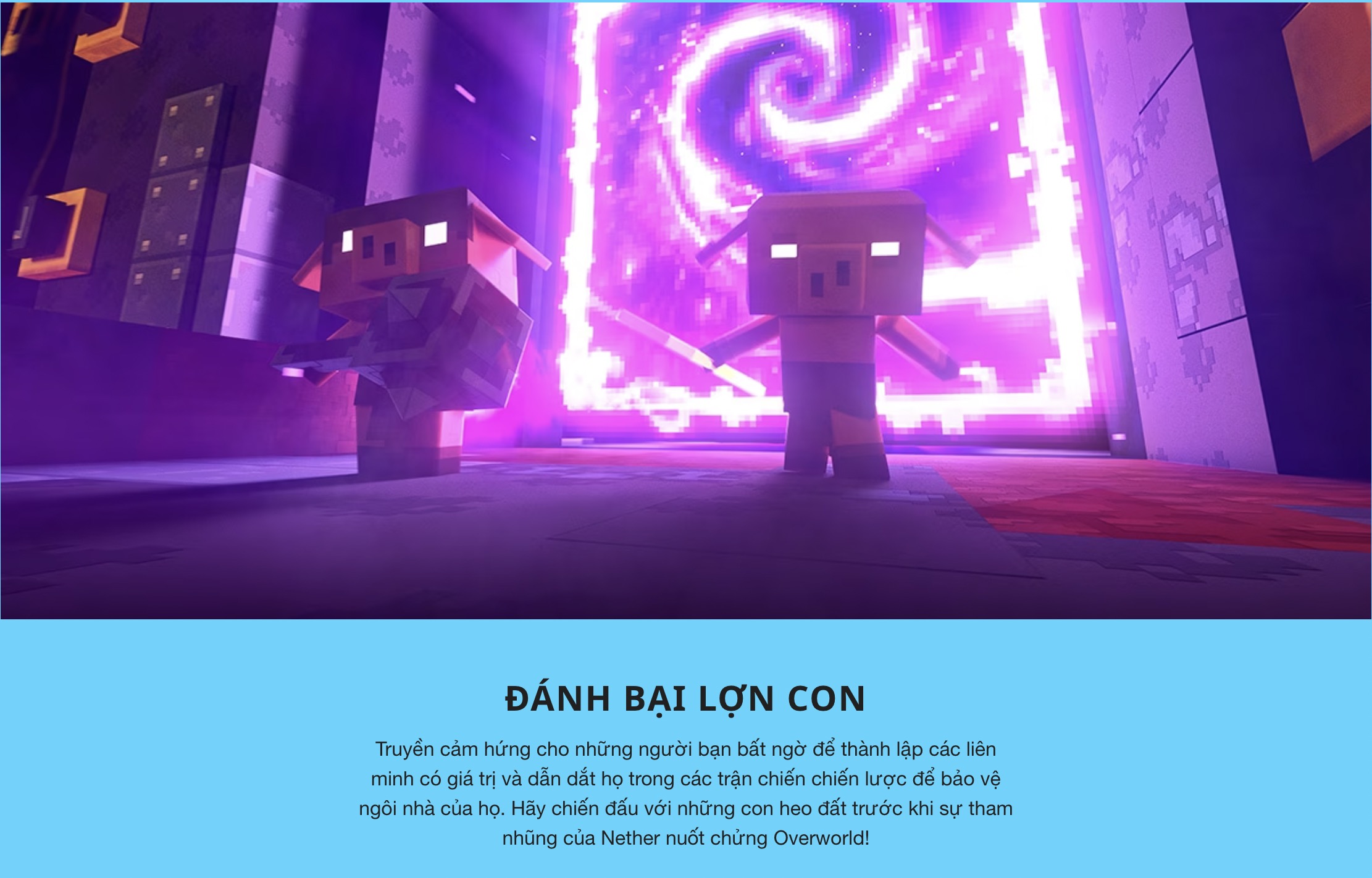 Bạn sẽ không tìm thấy bất kỳ thiết lập rối rắm hay cốt truyện xoắn não nào trong Minecraft Legends. Tất cả mọi thứ đều rất đơn giản: bè lũ Piglin từ Nether bất ngờ trào lên thế giới xanh tươi Overworld, và bạn là người hùng được giao trọng trách gầy dựng quân đội để đánh bại kẻ thù mới này. Để làm được điều này, game thủ cần thu thập các loại tài nguyên quen thuộc (gỗ, đá, sắt, đá đỏ,…) để xây dựng các “nhà lính” Spawner, và chiêu mộ các chủng loại binh sĩ khác nhau để phá hủy những tiền đồn và pháo đài của Piglin trên khắp thế giới.
