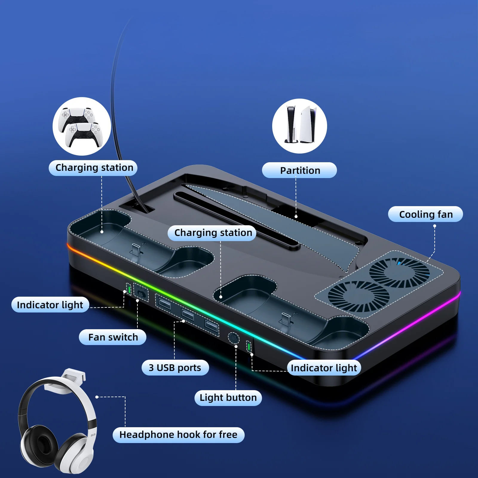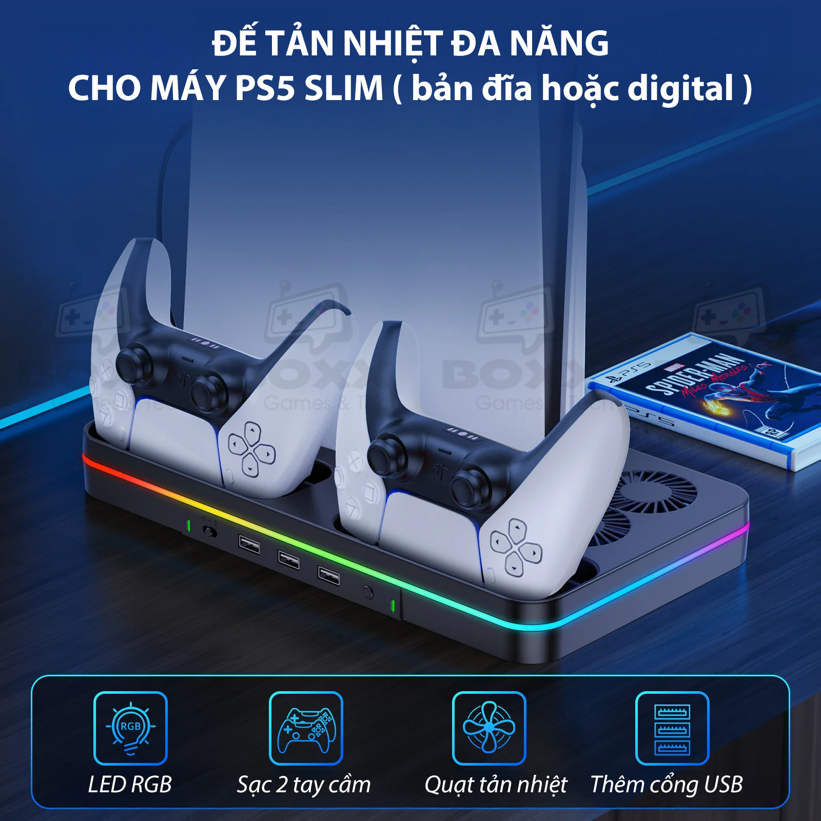 Đế Tản Nhiệt cho máy PS5 Slim kèm đèn LED RGB chính hãng IINE