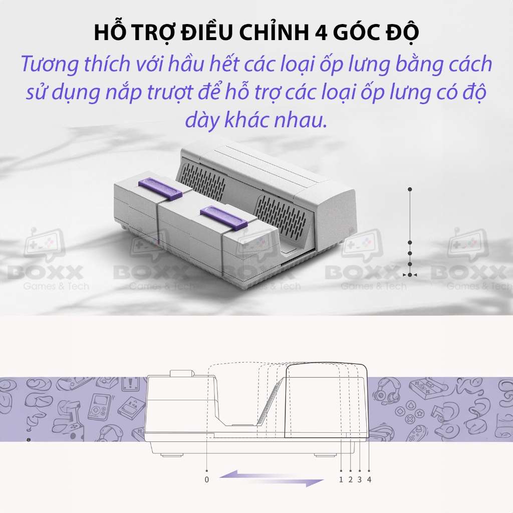 - Tương thích với hầu hết các loại ốp bảo vệ, với 4 góc điều chỉnh bằng nắp trượt để hỗ trợ các vỏ có độ dày khác nhau.