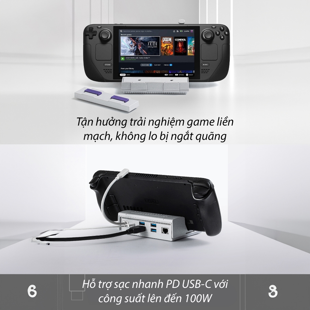 - Hỗ trợ nhiều thiết bị chơi game bao gồm Steam Deck, AYANEO, Switch, Switch OLED, và ROG Ally.