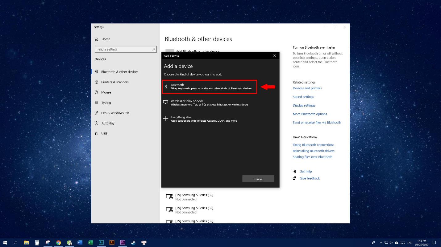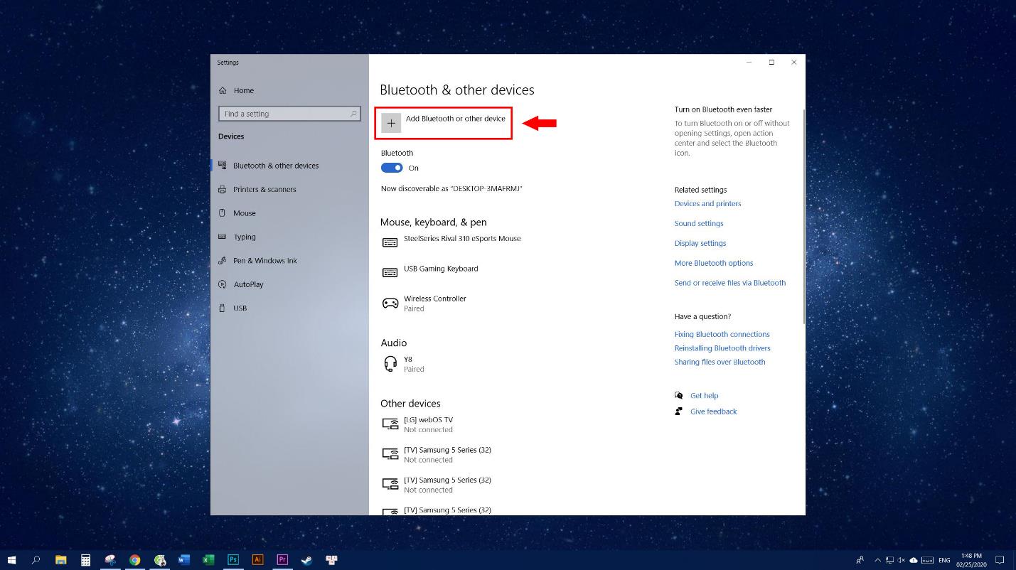 Trong mục Devices, ấn nút “Add Bluetooth or other device