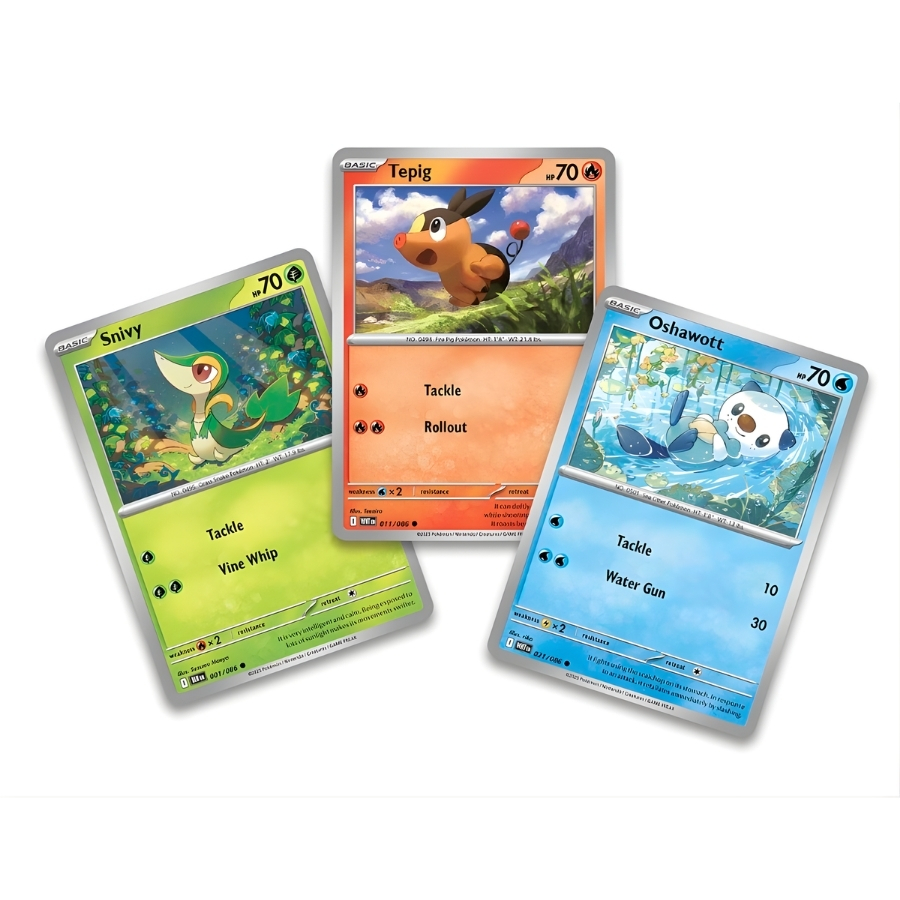 👉 Khởi đầu với 3 starter Unova: Snivy – Tepig – Oshawott (foil promo)