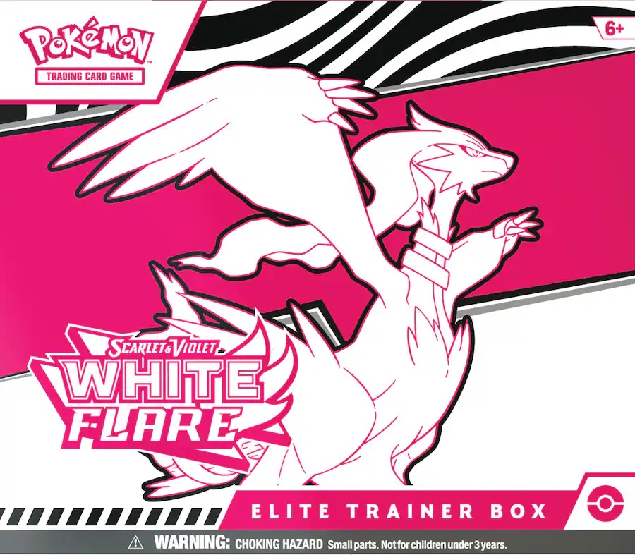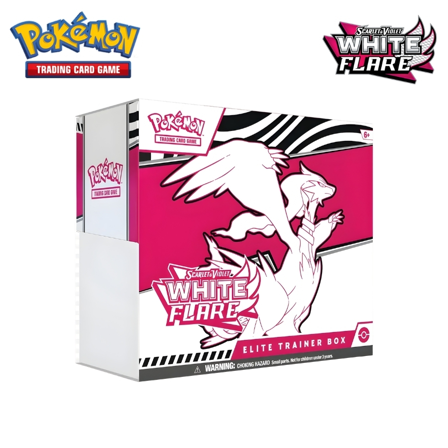 White Flare Elite Trainer Box (ETB) là phiên bản cao cấp thuộc dòng Scarlet & Violet, mang phong cách rực sáng đối lập với Black Bolt, tạo nên một bộ đôi expansion cực kỳ được săn đón.
