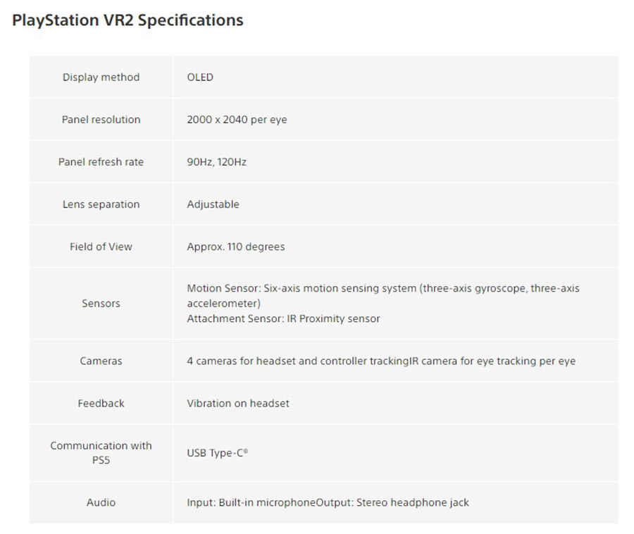 Hình ảnh chân thực: Để có trải nghiệm tốt nhất PSVR 2 cung cấp 4K HDR, phạm vi quan sát (Field of View) khoảng 110 độ. Với màn hình OLED từ Samsung độ phân giải 2000 x 2040 pixels cho mỗi bảng mắt và tần số quét 90 / 120Hz.